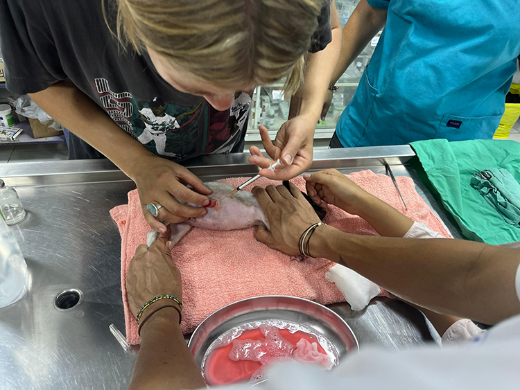 We rushed him into emergency care. Our exhausted team worked around the clock – cleaning his wound, giving him antibiotics, feeding him by hand every four hours, even through the night.