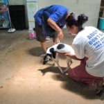 Today he’s no longer the broken, nameless pup we first carried into the clinic. He’s Gherka – “little pickle” – a lively 17-pound (7.7 kilos) dog who charms everyone with his sweetness and has won the devotion of Somjit, our three-legged mother figure.