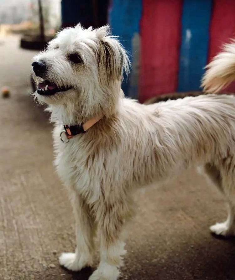 Today, Blatu is one of the gentlest souls in our care. She’s calm, patient, wonderful with other dogs, and especially kind with puppies. Her coat catches the sunlight – shifting from snowy white to warm, beach-blonde gold. She carries herself with a quiet dignity… as though she’s still waiting for someone to call her family again.